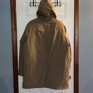 NWT-Calvin Klein-L-tan-zip and snaps, hooded, puffer coat/hooded stadium jacket