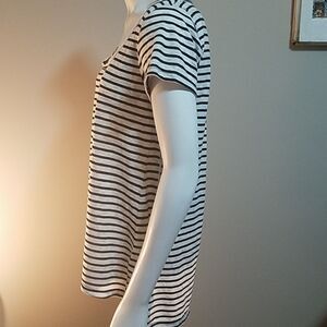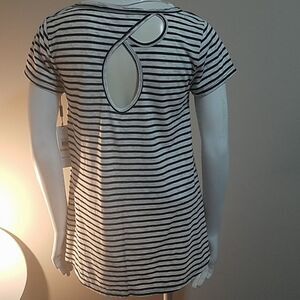 Elevate your casual wardrobe with this stylish New with tag Calvin Klein Black & White striped Short Sleeve Tee in size Small. This tee features a classic black and white striped design. Made from high-quality materials, this Calvin Klein tee is not only fashionable but also comfortable to wear. The short sleeves and scoop neck design make it perfect for everyday wear or for dressing up with a blazer for a more polished look. Whether you're running errands or meeting friends for brunch, this versatile tee is a must-have staple in your closet. Add a touch of sophistication to your outfit with this Calvin Klein tee and stand out from the crowd with its effortless style.