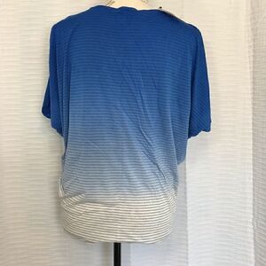 Pretty blue - white ombré dolman short sleeve top with grey stripes.