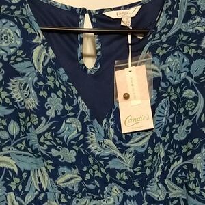 NWT Candies Blue Floral lace trim sleeve Sz Small
