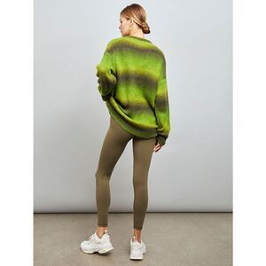 Our exclusive ombré crew neck boyfriend sweater features a mohair and merino blend for a luxe hand feel. Pair this with our Olive Ribbed leggings for a pop of color over your activewear. Added bonus, it covers your bum