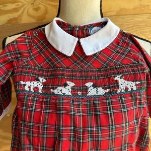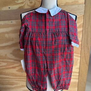 NWT Carriage Boutique Red Plaid Baby Romper with White Collar