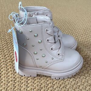 NWT Cat & Jack Light Pink Combat Boots with Pearl Studs Size 5T&7T