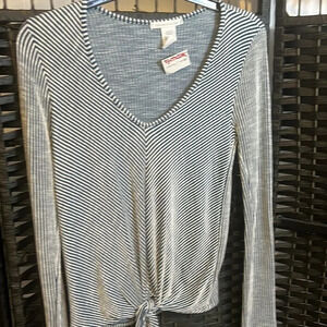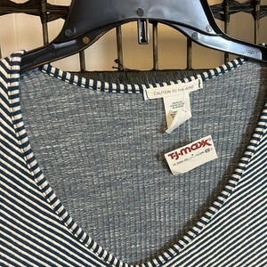 NWT Teal and White Stripes with round VNeck