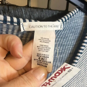 NWT Caution to the Wind Aqua Blue&White Striped Blouse Size Medium