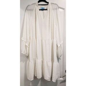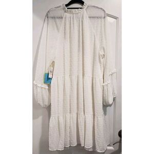 NWT CeCe Soft Ecru Eyelet Dress Long Puff Sleeve Size 2XL MSRP $99