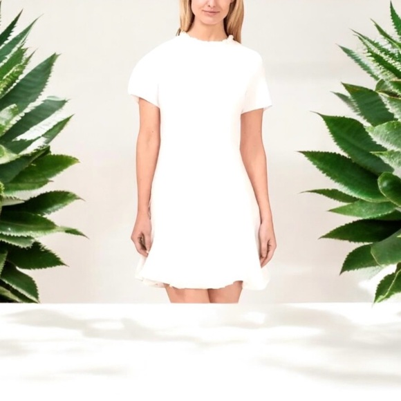 #CeCe #WhiteDress #RuffleHem #ElegantStyle #ChicFashion
