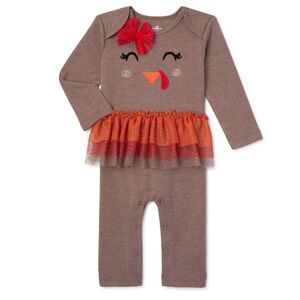 NWT Celebrate Thanksgiving Turkey Romper with Goggle Bib