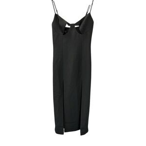 NWT Ceren Ocak Black Cut Out Slit Dress Crepe Fabric Spaghetti Strap sz S