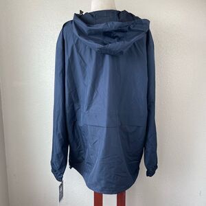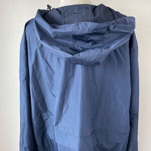 Classic windbreaker style jacket measuring 25 inches across the chest laying flat and 33 inches in length from shoulder to hem.