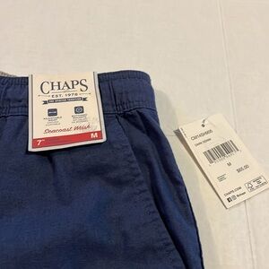 NWT-Chaps-M-dark denim-linen blend,elastic waist, drawstring, pull on, shorts.