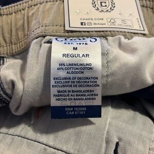 NWT-Chaps-M-dark denim-linen blend,elastic waist, drawstring, pull on, lightweight, shorts. Two side pockets, two button back pockets. 7 inch inseam. 55% linen, 45% cotton. See photos for approximate flat measurements. Casual, beachy, preppy.