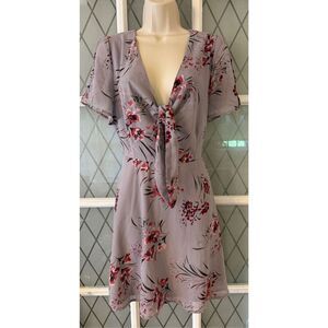 NWT Charlotte Russe Purple Floral Tie Front Fit And Flare Dress Size Large.
