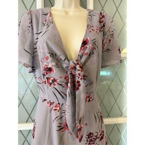 NWT Charlotte Russe Purple Floral Tie Front Fit And Flare Dress Size Large