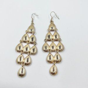 NWT - Charming Charlie - Large Red Faceted Teardrop Chandelier Gold Tone Earrings. Earrings are 4.25” long by 1.5” at the widest point and have a small bit of weight to them. Earrings are new with tags and are in excellent condition.