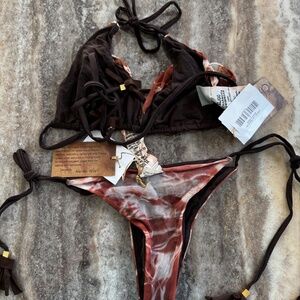 NWT-Charmosa Brazilian Bikini, 2 Piece, Browns Tie Dye Reversable