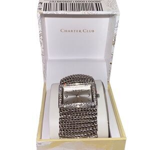 NWT Charter Club silver tone rectangle shaped stretch watch