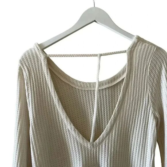 NWT Chaser Revolve Cream Ivory V BACK THERMAL TEE Rice Long Sleeves Dolman M