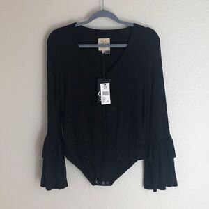 Brand New With Tags, Chaser Layered Ruffle Sleeve Glitter Bodysuit in size small. V-neck bodysuit speckled with sparkly glitter is a perfect layering piece for a night out.