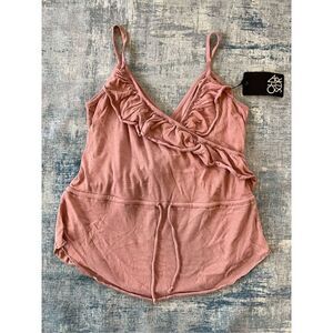 NWT! Chaser Mauve Pink Faux Wrap Ruffle Drawstring Tank Top Medium
