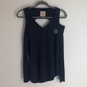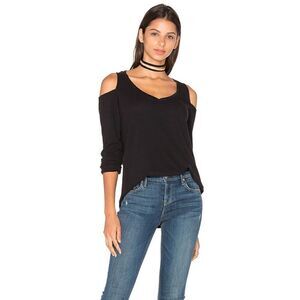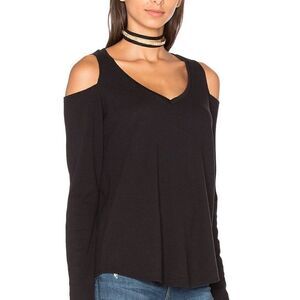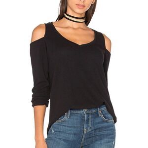 Brand New With Tags, Chaser V-Neck Black thermal cold shoulder top with open back. Size small.