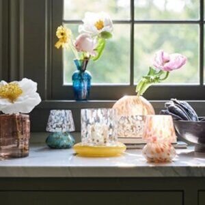 NWT-Cheena Fruity Apple Cider Champagne Glass Mushroom Lamp Candle-Blue-XS