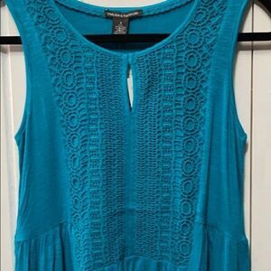 Chelsea & Theodore Teal sleeveless crochet front Tunic size small. NWT. Soft and soo pretty. Pics don’t do it justice