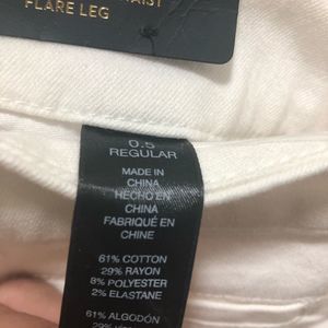 NWT Chico’s So Slimming Girlfriend Flare White deans size .5 R XS waist 30 rise 11 inseam 32 leg opening 10 (N948)