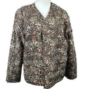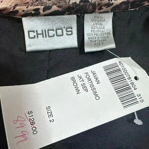 Chico’s jacket. Animal print. Open front. Long sleeves. 100% silk. Very stylish. New with tags. Size 2 fits large/12