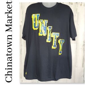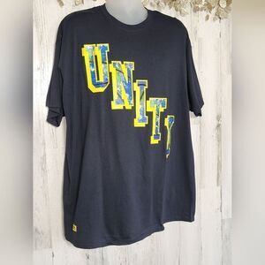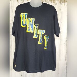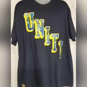 Great quality tee shirt. Crew Neck. Black Tshirt with Unity is yellow.