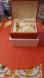 This set was given to me as a really nice gift back in the early 2000's & I never wore them so they are in brand new condition. The watch is gold with a round black face with beautiful sparkling Swarovski crystals surrounding it & the 7.5" bracelet is in matching gold color with crystals in the center part. The battery in the watch needs replacing as I got this in the early 2000's, but it's guaranteed to work, as this item is new & it was working great when the battery was new. The set comes in a cute little wooden jewelry box with a little pillow for the bracelet. It also comes with a white gift box,as shown in photos. The movement(internal workings) is made in Japan(renowned watch makers). Smoke free home.❤️