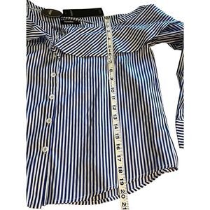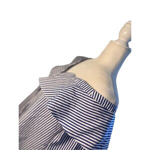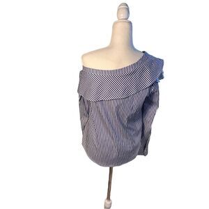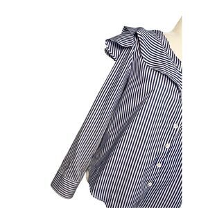 NWT navy and white striped Clocolor asymmetrical blouse. Please note: there is one imperfection in the material (see pic).