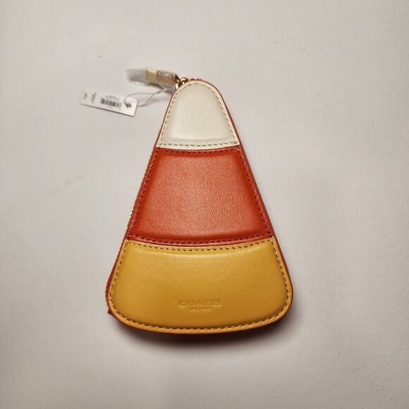 NWT Coach 5736 Halloween Candy Corn Zip Coin Card Case Chalk Leather````