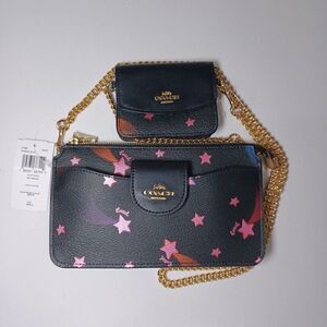 NWT Coach C7289 Poppy Crossbody In Canvas Leather With Disco Star Print Black