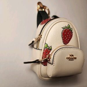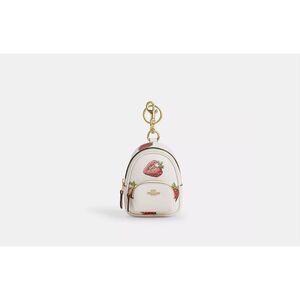 NWT Coach CAO93 Mini Court Backpack Bag Charm with Strawberry Print