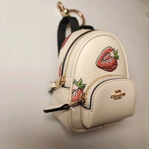 NWT Coach CAO93 Mini Court Backpack Bag Charm with Strawberry Print V2