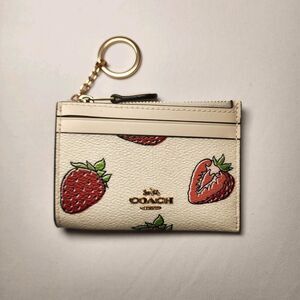 NWT Coach CAR17 Mini Skinny Id Case With Strawberry Print Canvas Chalk Multi V3