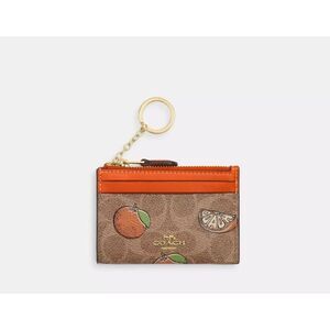 NWT Coach CAR21 Mini Skinny Id Case In Signature Canvas With Orange Print In Tan