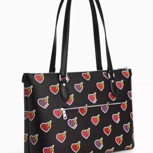 🔥🎁NWT! Coach Gallery Tote Bag with Heart Bolt Print Black Multi Msrp:$378.00