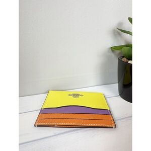 NWTCoach Slim ID Card Case Colorblock Sv/Bright Yellow Multi Crossgrain Leather