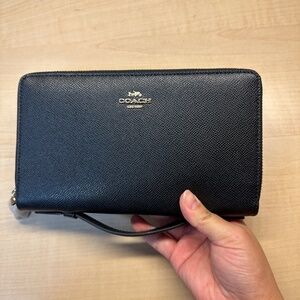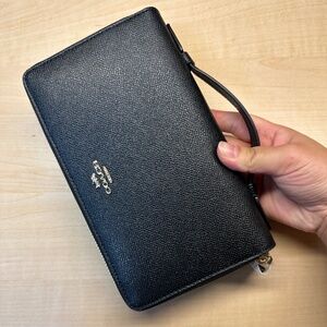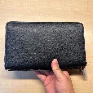 NWT!Coach Women's F23334 Crossgrain Leather Double Zip Travel Wallet In Black