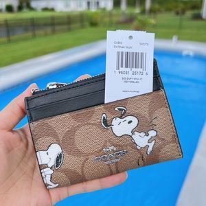 NWT Coach X Peanuts Mini Skinny Id Case In Signature Canvas With Snoopy Print