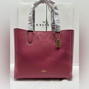 🆕🔥NWT! Coach Derby Tote Handbag Leather Gold/Rouge Msrp:$350.00