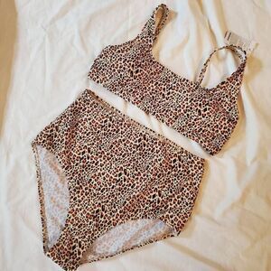 NWT Cocoship. animal print, scoop top, highwaist bottom bikini set. Size 10