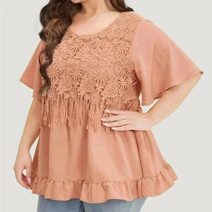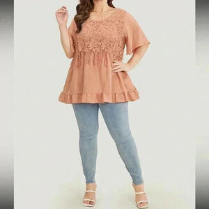 NWT!Coral contrast lace trim flutter hem blouse size 10 or medium