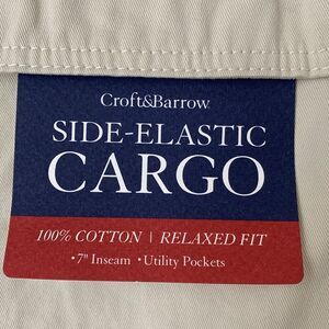 NWT Croft & Barrow Men's Relaxed Fit Cream Cotton Cargo Shorts Size 42
