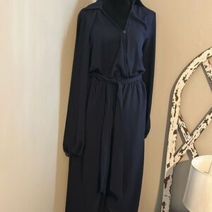 NWT Cupshe Womens Size Medium Navy Long Sleeve Collared V Neck Jumpsuit B