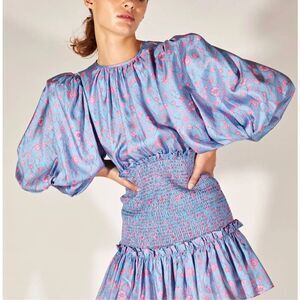 NWT Cynthia Rowley smocked silk twill dress, Small $495
