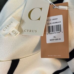 Brand new and so stylish! Elegant ivory top with black stripes. It has a classy and classic look. Perfect for so many outfit options.