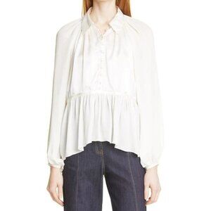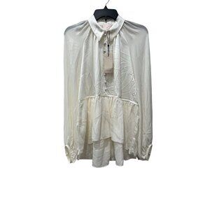 NWTD CINQ À SEPT Size M Evan Oversize Silk Top In Ivory MSRP $395
